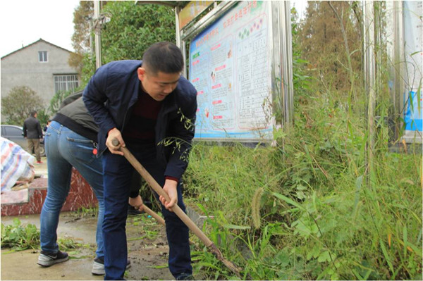 开展推进扶贫村“美丽乡村”建设义务锄草劳动